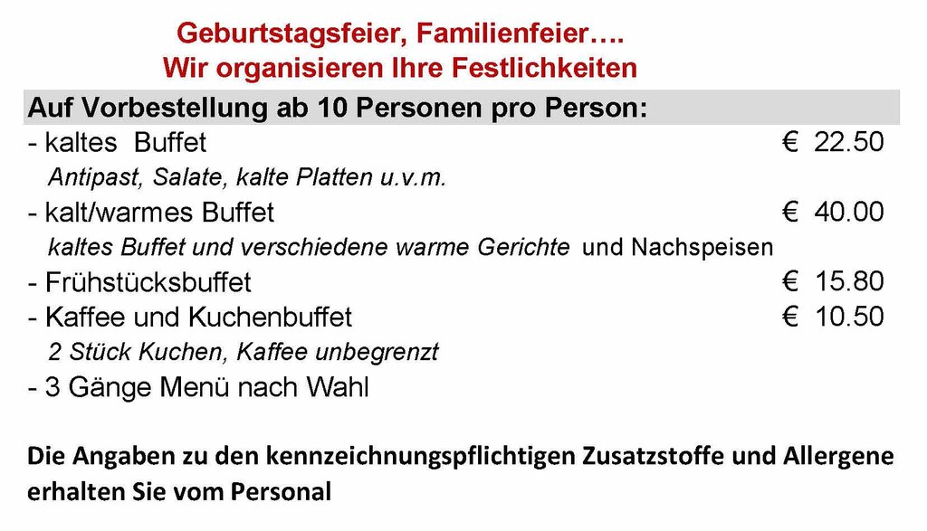 Unsere Speisekarte